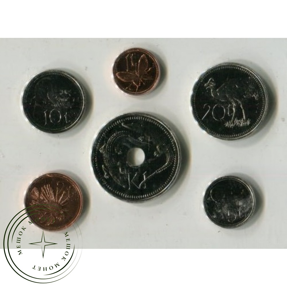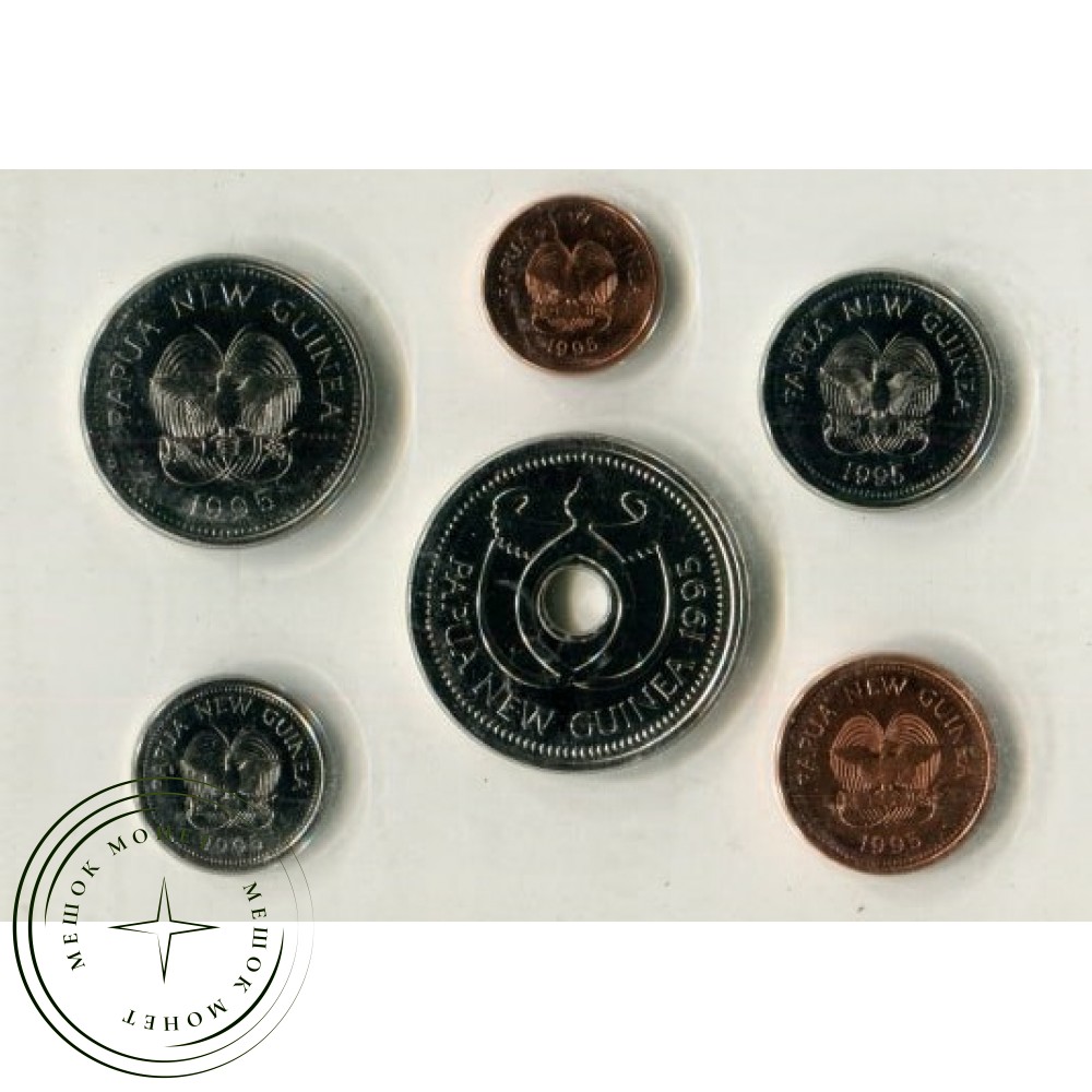 Набор стандартных циркуляционных монет Папуа — Новой Гвинеи, выпущенный в 1995 году. Эти монеты были выпущены к 20-й годовщине независимости страны.