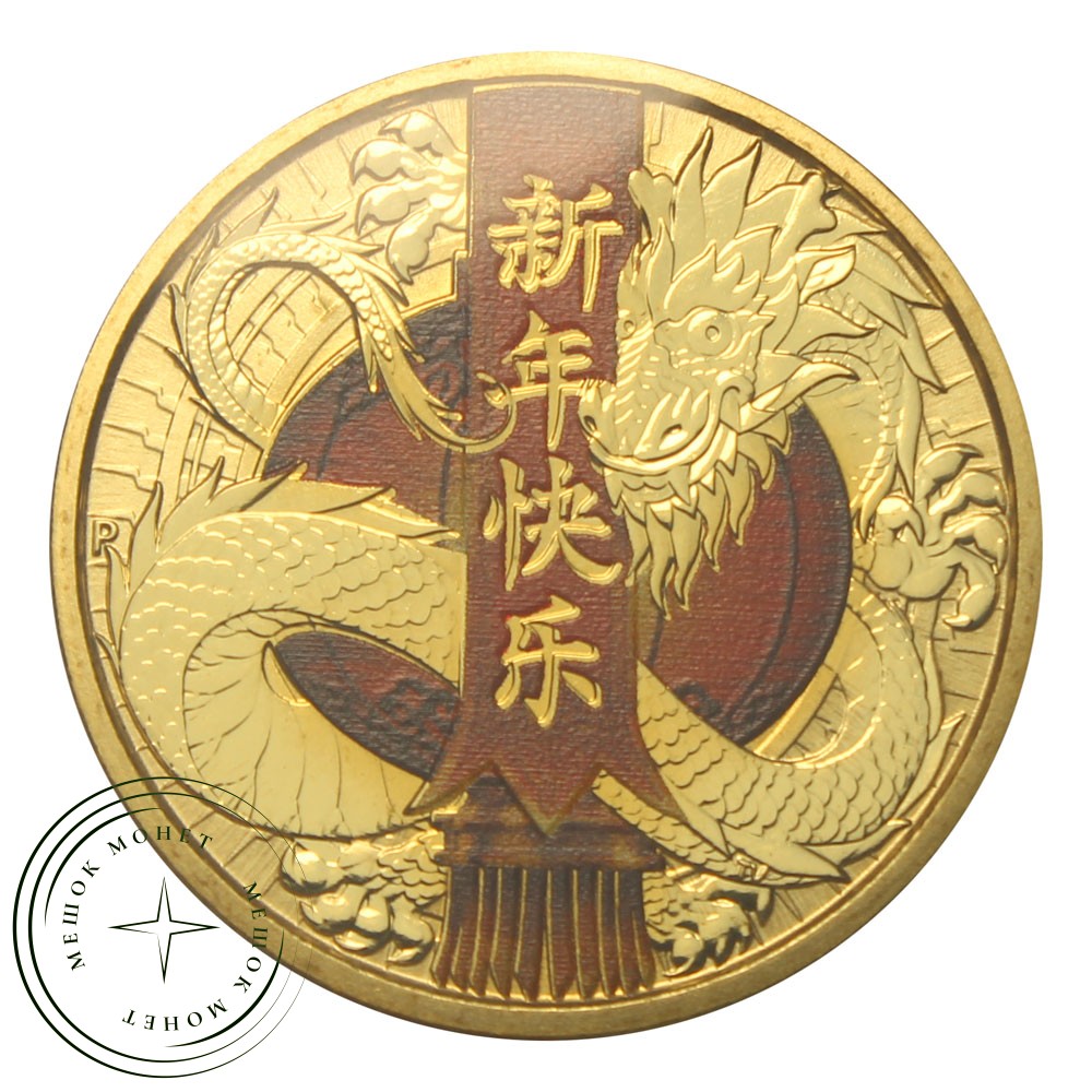 Монета номиналом 1 доллар 2017 Тувалу Дракон. Китайский новый год.