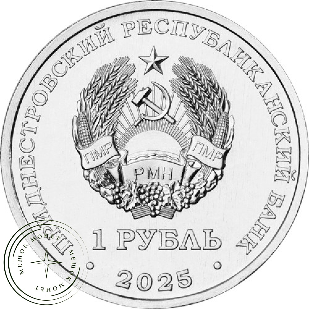 Аверс монеты: в центре – изображение Государственного герба Приднестровской Молдавской Республики; в нижней части под гербом – номинал «1 РУБЛЬ»; по кругу – надписи: вверху – «ПРИДНЕСТРОВСКИЙ РЕСПУБЛИКАНСКИЙ БАНК», внизу – год выпуска «2025».