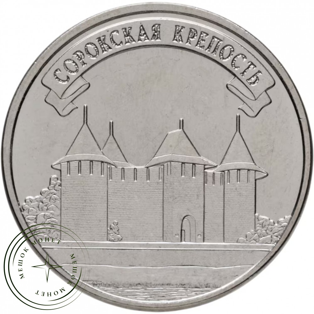в центре – изображение Сорокской крепости; вверху – лента с надписью «СОРОКСКАЯ КРЕПОСТЬ».