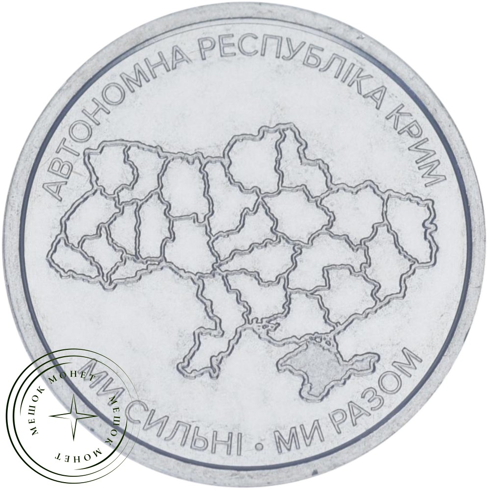 На реверсе монеты изображена стилизованная карта Украины с четкими административными границами, на которой Крым выделен матовым фоном. Вверху по окружности надпись на украинском языке «АВТОНОМНА РЕСПУБЛІКА КРИМ», а внизу — лозунг серии «МИ СИЛЬНІ. МИ РАЗОМ»