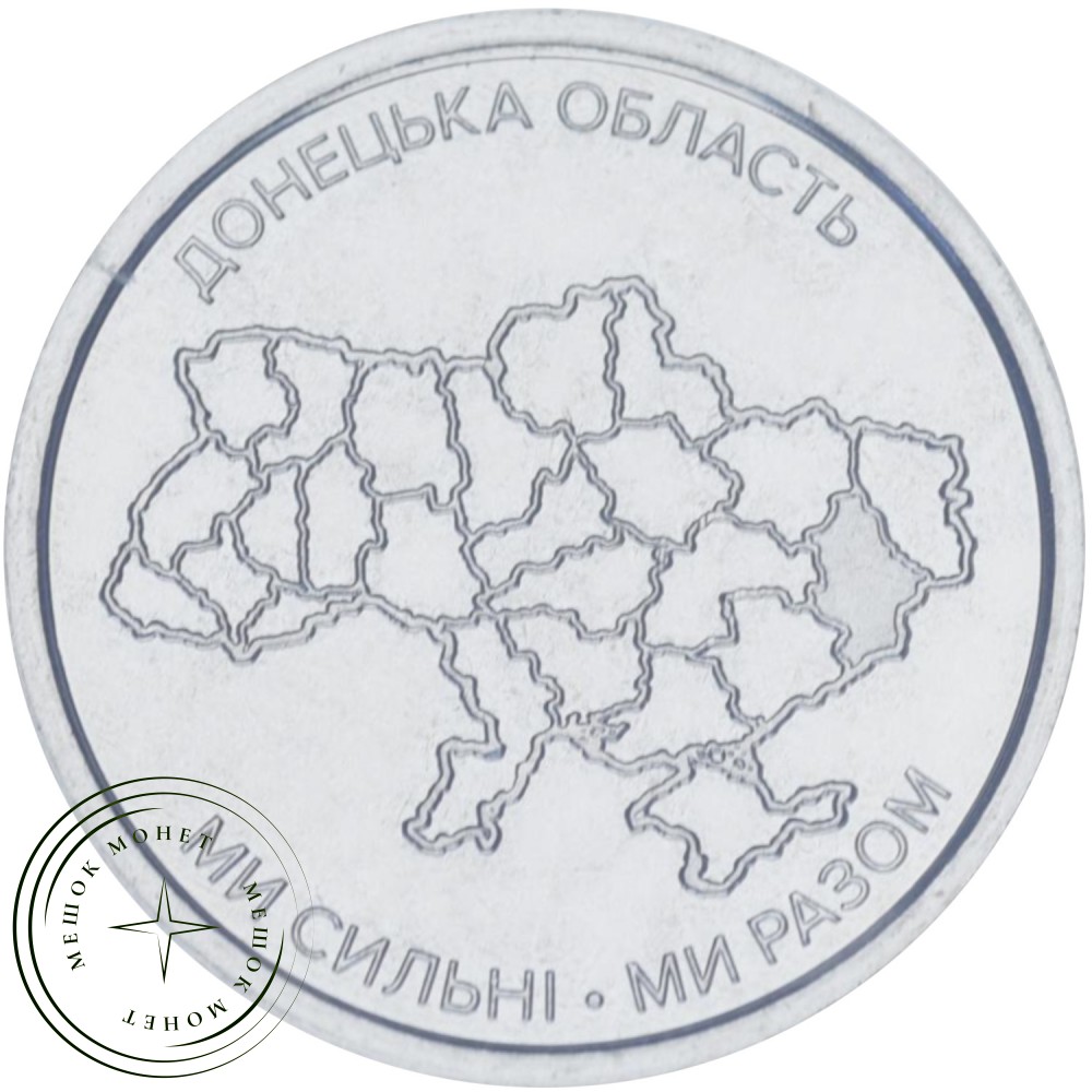 Памятная монета номиналом 10 гривен, выпущенная Национальным банком Украины в рамках серии «Мы сильные. Мы вместе». Она посвящена Донецкой области, что подтверждается надписью «ДОНЕЦЬКА ОБЛАСТЬ» и стилизованной картой региона на реверсе монеты.