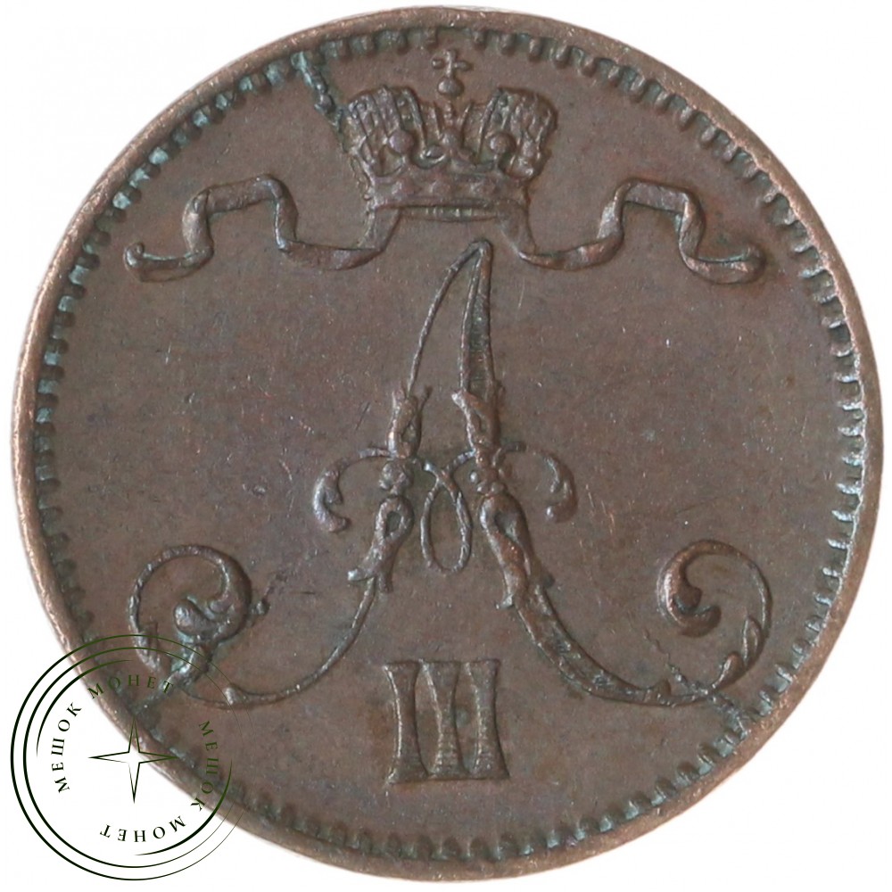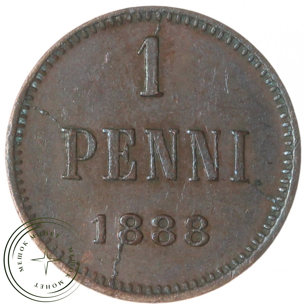 Реверс: В центре надпись в три строки: «1»│«PENNI»│«1888». По окружности канта имеются рельефные элементы, выполненные в виде зубцов.