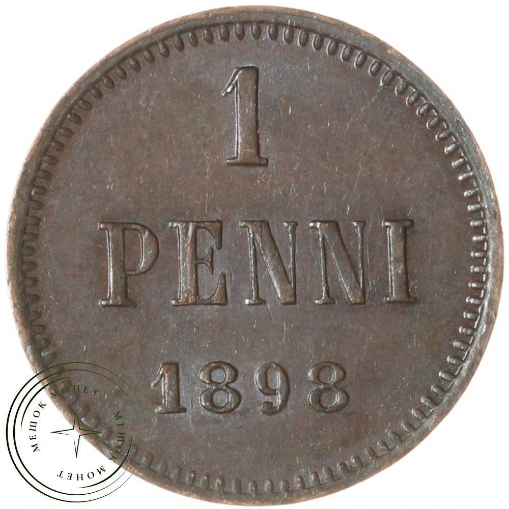 Реверс: В центре надпись в три строки: «1»│«PENNI»│«1898». По окружности канта имеются рельефные элементы, выполненные в виде зубцов.