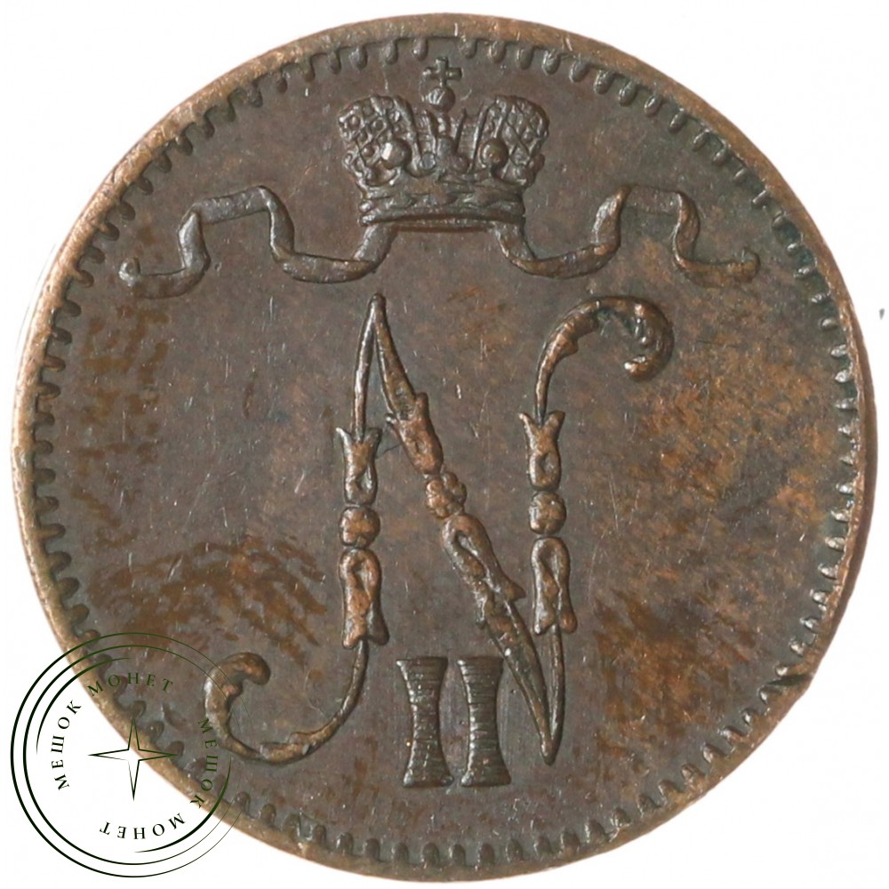 Реверс: В центре надпись в три строки: «1»│«PENNI»│«1900». По окружности канта имеются рельефные элементы, выполненные в виде зубцов.