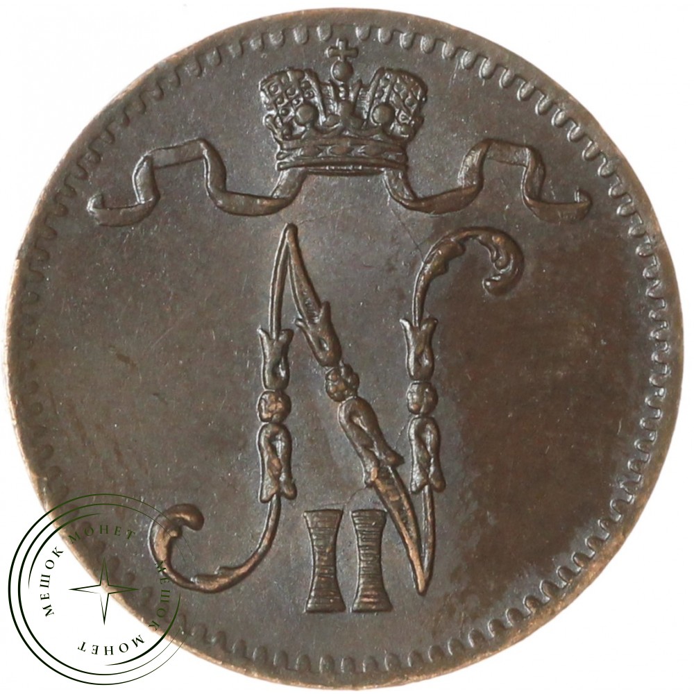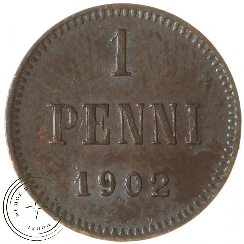 Реверс: В центре надпись в три строки: «1»│«PENNI»│«1902». По окружности канта имеются рельефные элементы, выполненные в виде зубцов.