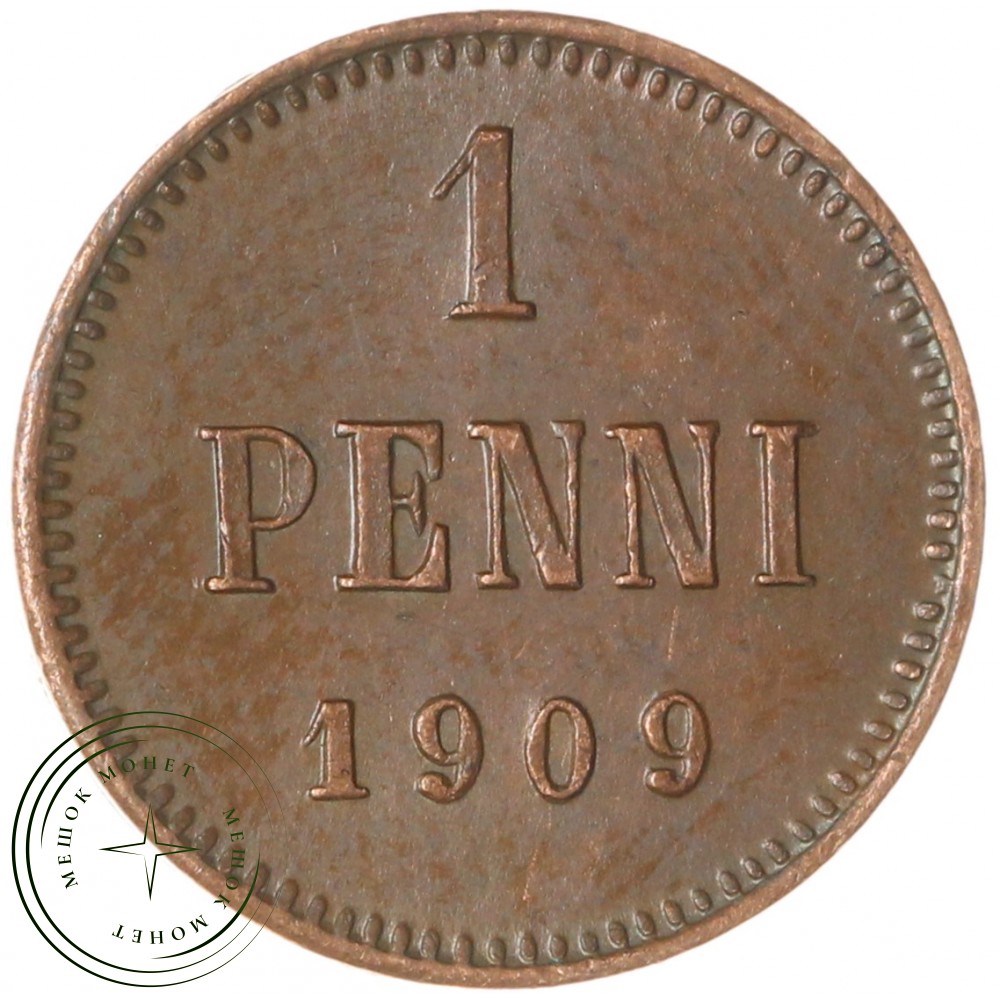 Реверс: В центре надпись в три строки: «1»│«PENNI»│«1909». По окружности канта имеются рельефные элементы, выполненные в виде зубцов.
