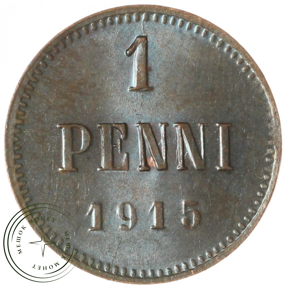 Реверс: В центре надпись в три строки: «1»│«PENNI»│«1915». По окружности канта имеются рельефные элементы, выполненные в виде зубцов.