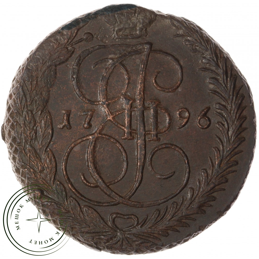 Реверс: В центре изображён вензель Екатерины II. Над вензелем — императорская корона. По обеим сторонам от вензеля цифры даты выпуска монеты: слева — «17», справа — «96» (1796 год). Вокруг центрального изображения, вдоль канта, изображён венок из лавровой и пальмовой ветвей, которые, в нижней части, перевязаны лентой на узел бантом.