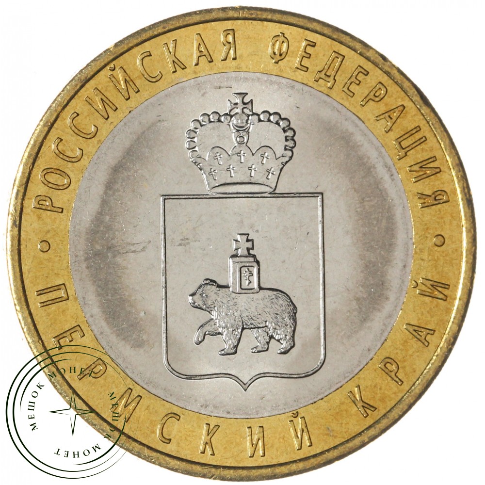 Реверс: изображение герба Пермского края, по окружности — надписи: вверху — "РОССИЙСКАЯ ФЕДЕРАЦИЯ", внизу — "ПЕРМСКИЙ КРАЙ".
