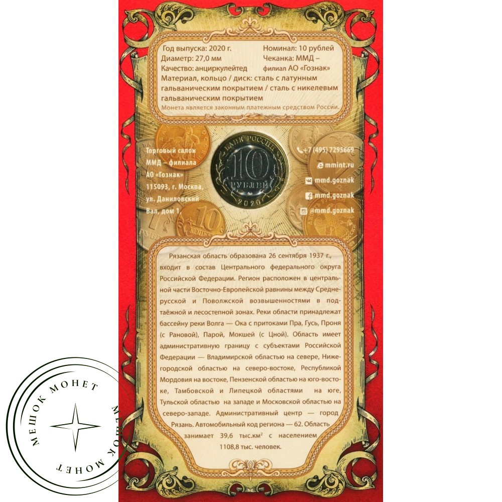 Реверс: рельефное изображение герба Рязанской области, на кольце по окружности имеются надписи, разделенные точками: в верхней части — «РОССИЙСКАЯ ФЕДЕРАЦИЯ», в нижней части — «РЯЗАНСКАЯ ОБЛАСТЬ».