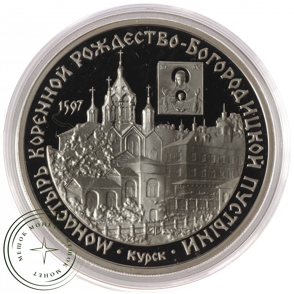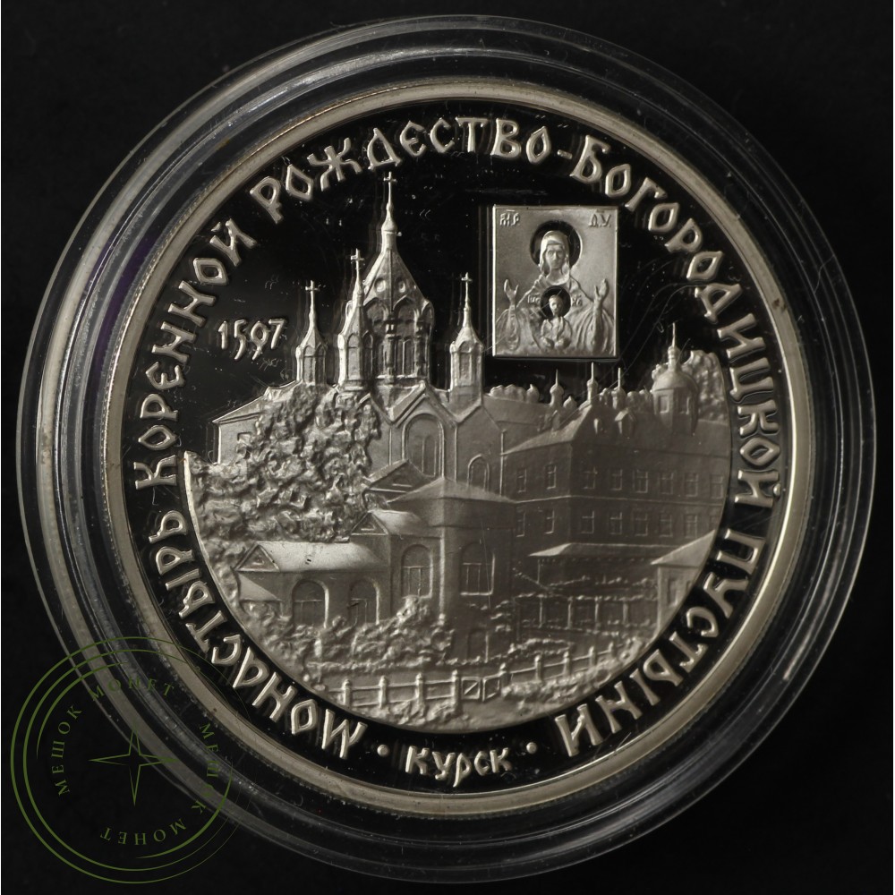 Реверс: изображения монастыря и чудотворной иконы «Знамение». По кругу надписи: «Монастырь Коренной Рождество-Богородицкой пустыни» и «Курск», разделенные точками, вверху дата: «1597».