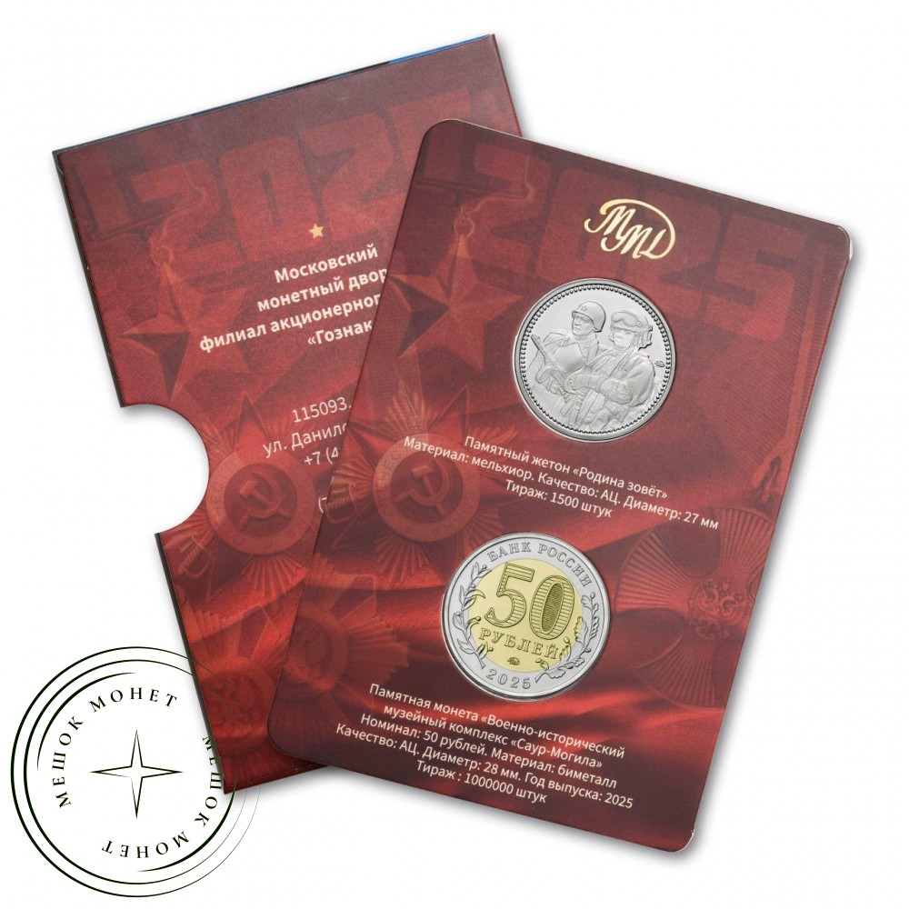 Аверс: рельефное изображение Государственного герба Российской Федерации, имеются надписи: «РОССИЙСКАЯ ФЕДЕРАЦИЯ», «БАНК РОССИИ», номинал монеты «50 РУБЛЕЙ», дата «2025 г.», товарный знак Санкт-Петербургского монетного двора.