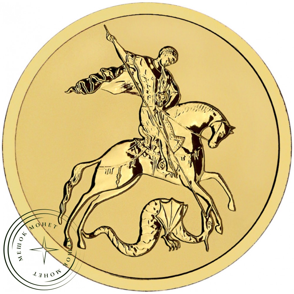 На оборотной стороне монеты расположено рельефное изображение Георгия Победоносца на коне, поражающего копьем змея.