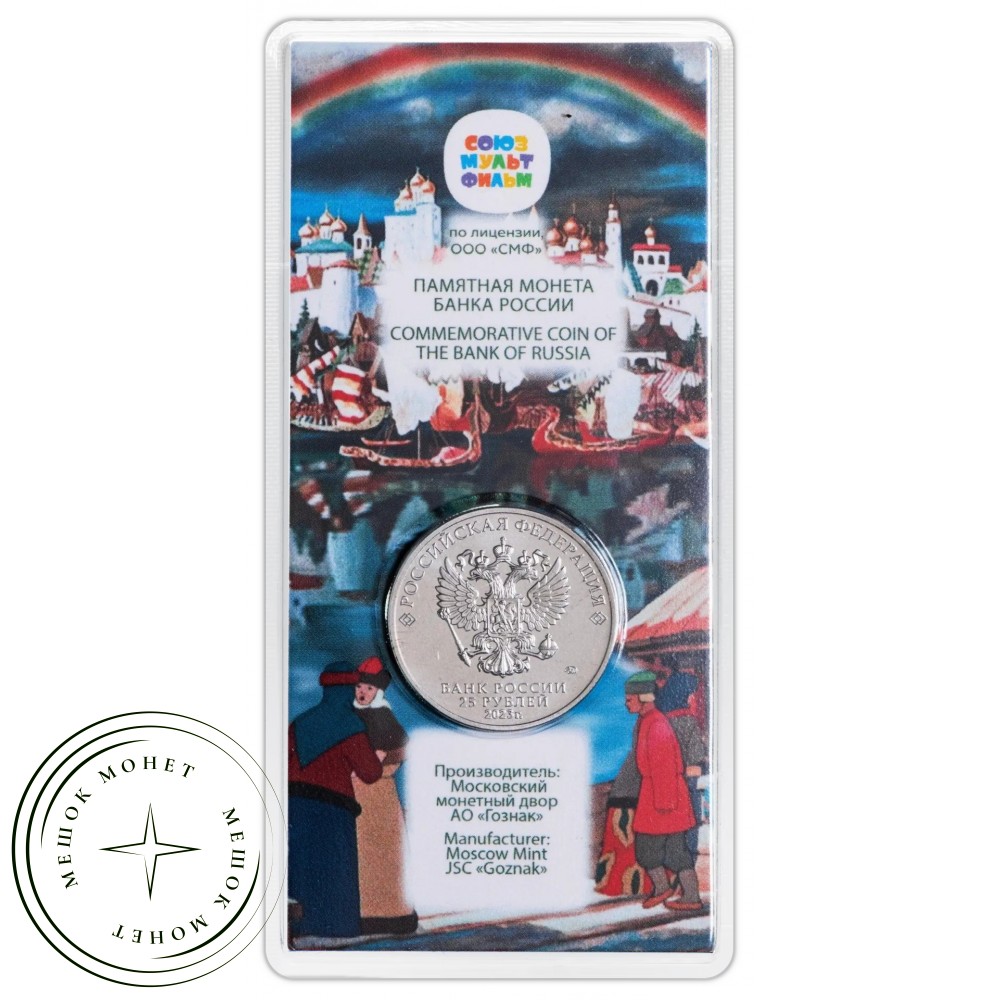Аверс: на матовом поле диска – рельефное изображение Государственного герба Российской Федерации, над ним вдоль канта – надпись полукругом: "РОССИЙСКАЯ ФЕДЕРАЦИЯ", внизу под гербом в центре в три строки надпись: "Банк России", номинал монеты: "25 РУБЛЕЙ" и дата: "2023 г.", справа – товарный знак монетного двора.