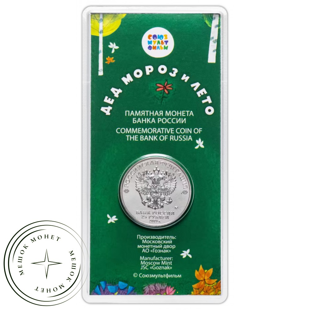 Аверс: на матовом поле диска – рельефное изображение Государственного герба Российской Федерации, над ним вдоль канта – надпись полукругом: "РОССИЙСКАЯ ФЕДЕРАЦИЯ", внизу под гербом в центре в три строки надпись: "Банк России", номинал монеты: "25 РУБЛЕЙ" и дата: "2019 г.", справа – товарный знак монетного двора.