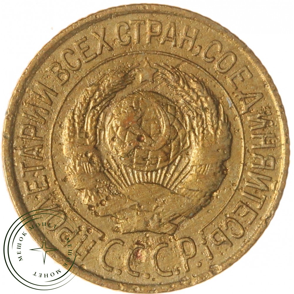 Аверс монеты состоит из изображения герба Союза Советских Социалистических Республик (СССР), надписи "Пролетарии всех стран, соединяйтесь!" и шестью витками лент, плюс одна общая, снизу по центру. Внизу надпись СССР, с точками после каждой буквы.