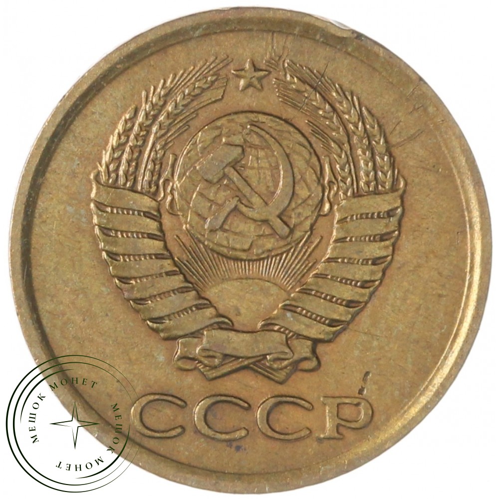 Аверс монеты состоит из изображения герба Союза Советских Социалистических Республик (СССР), с четырнадцатью витками лент, плюс одна общая, снизу по центру. Внизу надпись СССР.