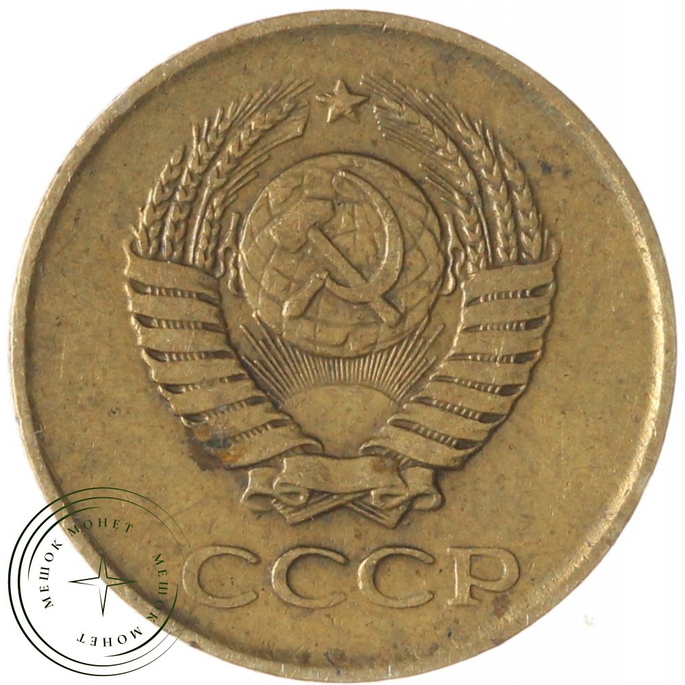 Аверс монеты состоит из изображения герба Союза Советских Социалистических Республик (СССР), с четырнадцатью витками лент, плюс одна общая, снизу по центру. Внизу надпись СССР.