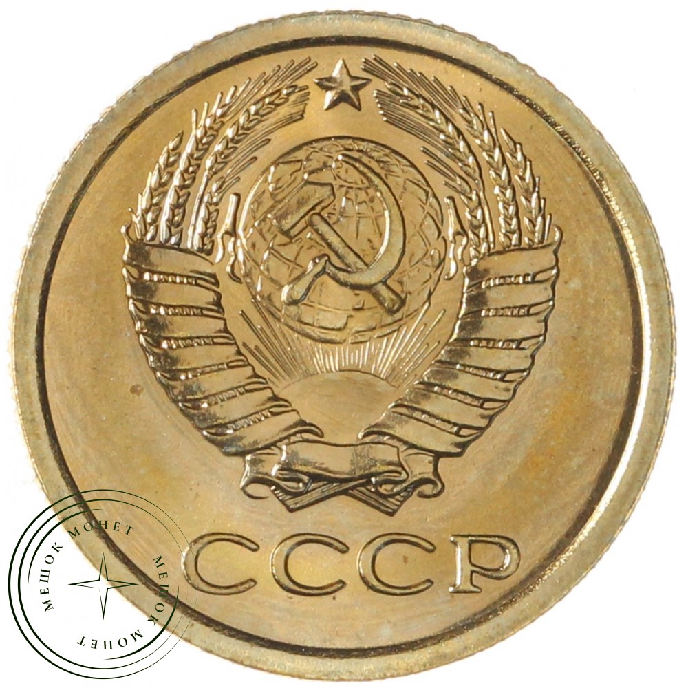 Аверс монеты состоит из изображения герба Союза Советских Социалистических Республик (СССР), с четырнадцатью витками лент, плюс одна общая, снизу по центру. Внизу надпись СССР.