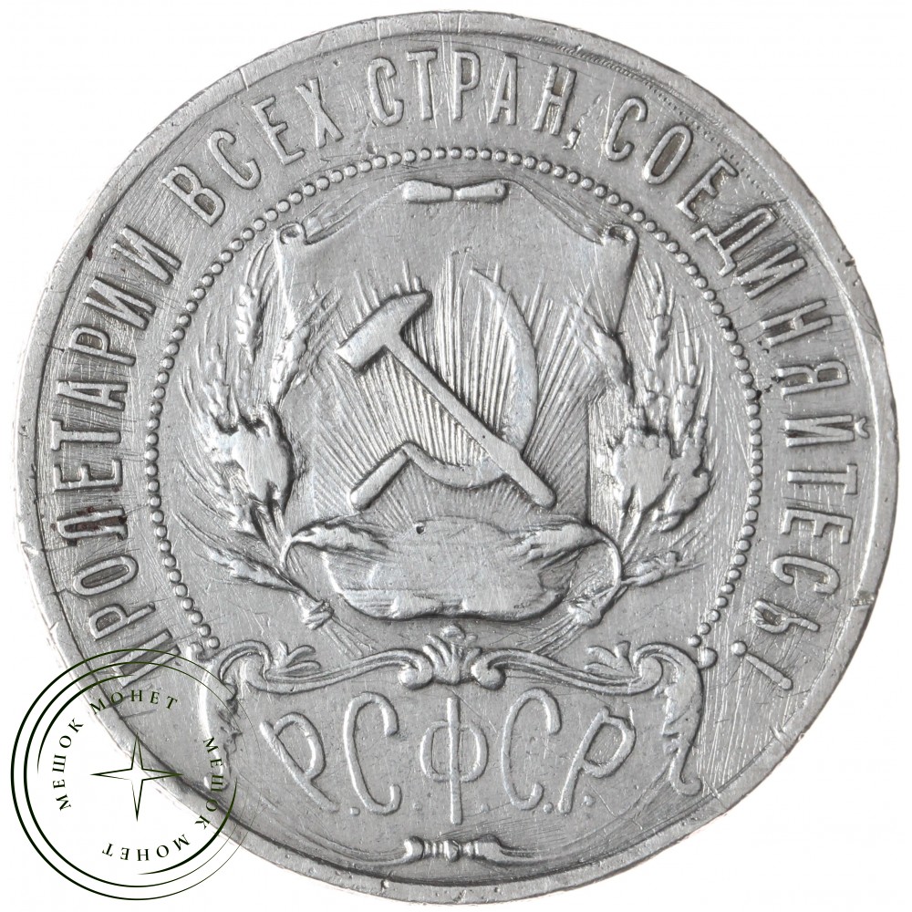 Аверс монеты состоит из изображения герба Российской Советской Федеративной Социалистической Республики (РСФСР), надписи "Пролетарии всех стран, соединяйтесь!". Внизу надпись РСФСР, с точками после каждой буквы.