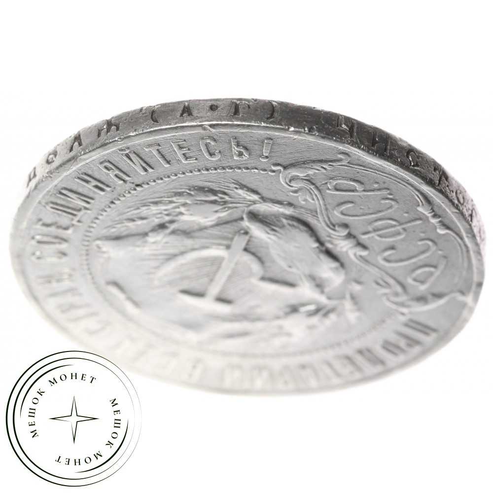 Монета выполнена из серебра 900-й пробы. На гурт нанесена надпись " Чистого серебра 4 золотника 21 доля (АГ)