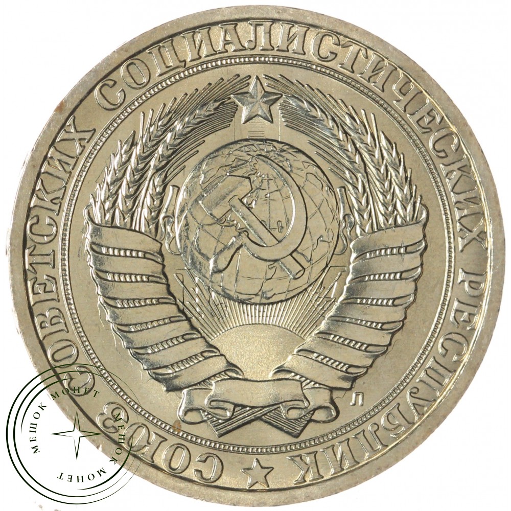 Аверс монеты состоит из изображения герба СССР, с четырнадцатью витками лент, плюс одна общая, снизу по центру, а также надписи "Союз Советских Социалистических Республик". Внизу находится звезда.. Под гербом, cправа, присутствует литера "Л", которая указывает на монетный двор, где была выпущена монета, в данном случае это Ленинградский монетный двор.