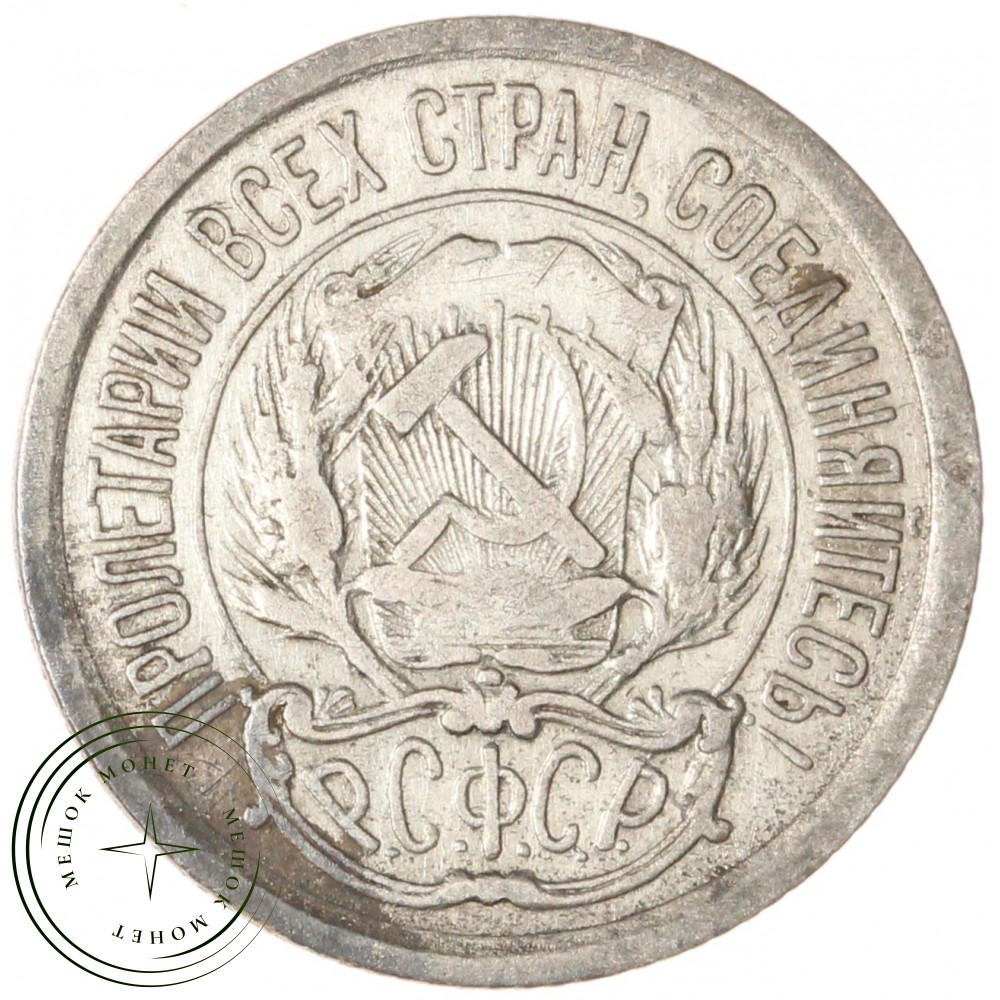 Аверс монеты состоит из изображения герба Российской Советской Федеративной Социалистической Республики (РСФСР), надписи "Пролетарии всех стран, соединяйтесь!". Внизу надпись РСФСР, с точками после каждой буквы.