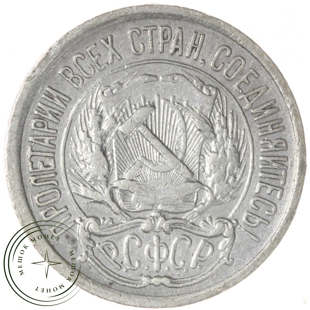 Аверс монеты состоит из изображения герба Российской Советской Федеративной Социалистической Республики (РСФСР), надписи "Пролетарии всех стран, соединяйтесь!". Внизу надпись РСФСР, с точками после каждой буквы.