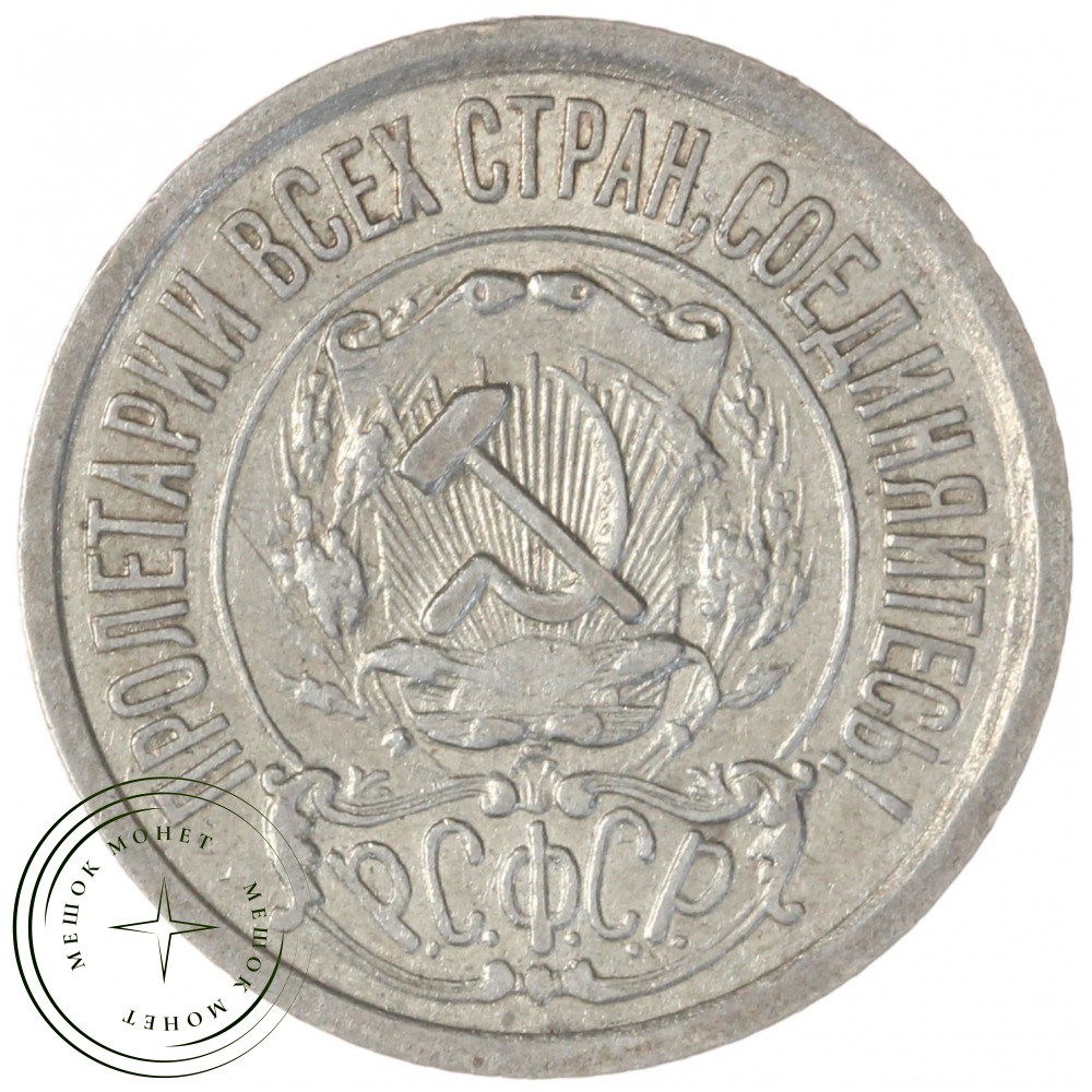 Аверс монеты состоит из изображения герба Российской Советской Федеративной Социалистической Республики (РСФСР), надписи "Пролетарии всех стран, соединяйтесь!". Внизу надпись РСФСР, с точками после каждой буквы.