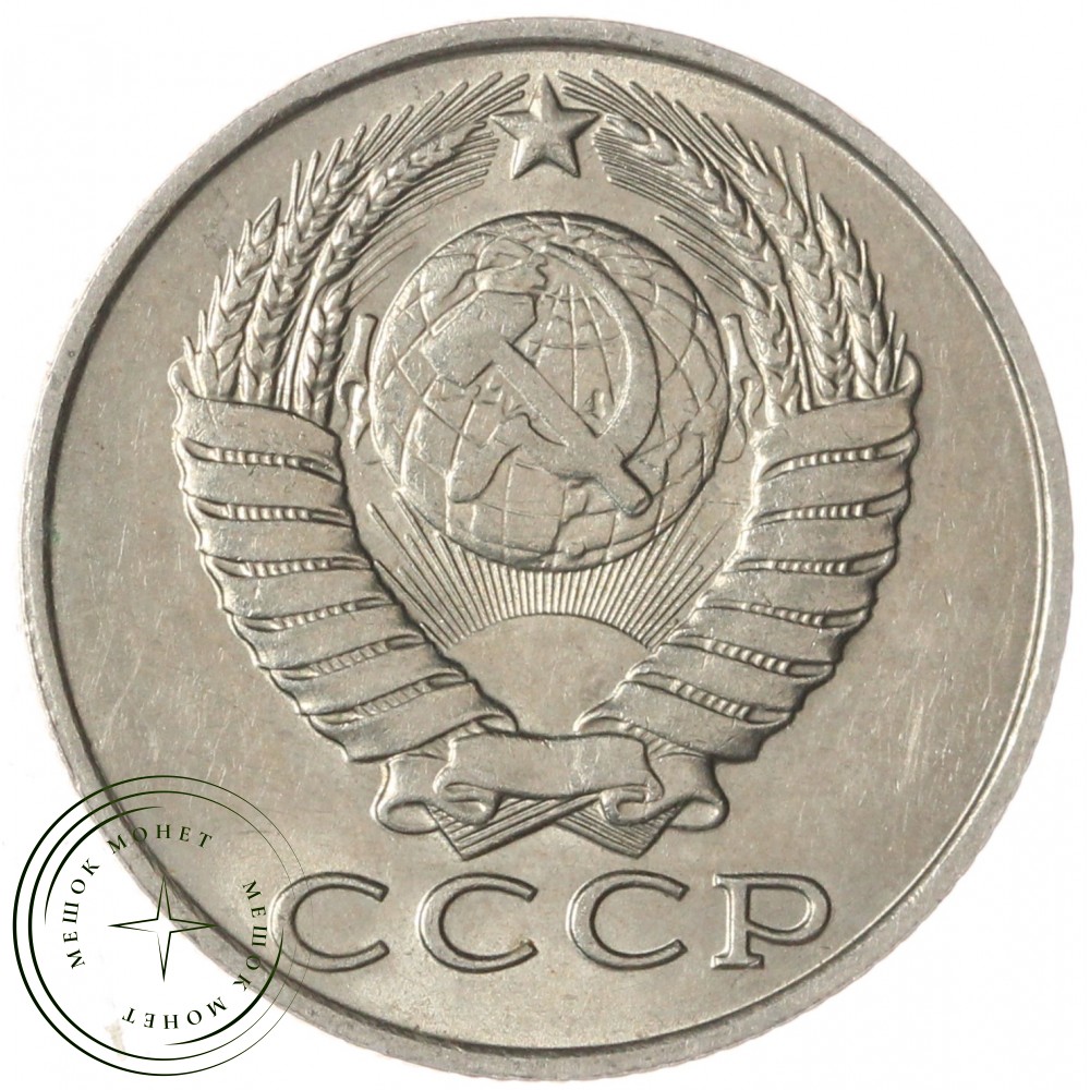 Аверс монеты состоит из изображения герба Союза Советских Социалистических Республик (СССР), с четырнадцатью витками лент, плюс одна общая, снизу по центру. Внизу надпись СССР.