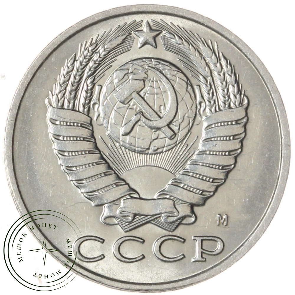 Аверс монеты состоит из изображения герба Союза Советских Социалистических Республик (СССР), с четырнадцатью витками лент, плюс одна общая, снизу по центру. Внизу надпись СССР. Под гербом, cправа, присутствует литера "М", которая указывает на монетный двор, где была выпущена монета, в данном случае это Московский монетный двор.