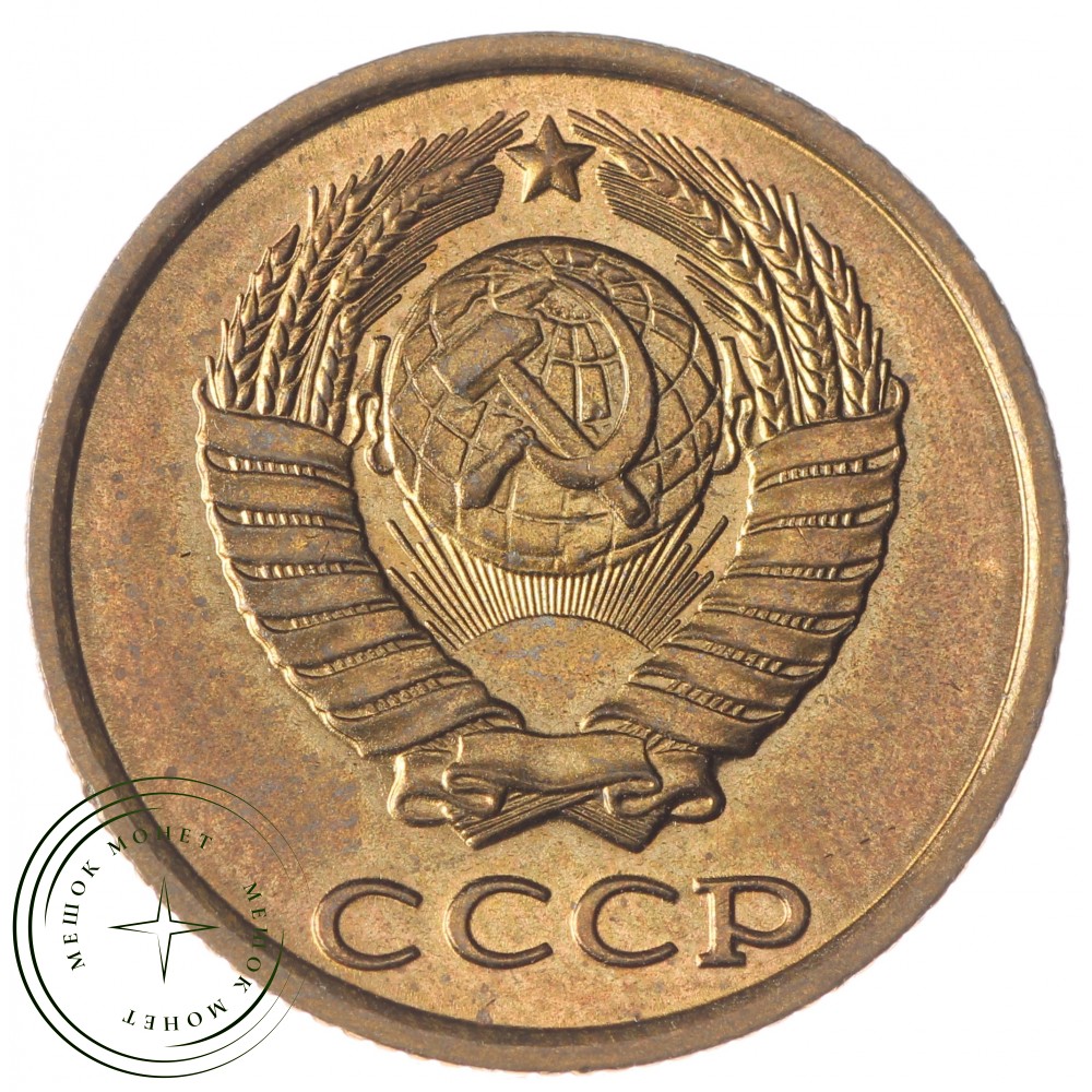 Аверс монеты состоит из изображения герба Союза Советских Социалистических Республик (СССР), с четырнадцатью витками лент, плюс одна общая, снизу по центру. Внизу надпись СССР.