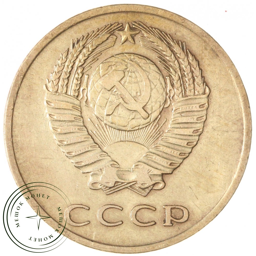 Аверс монеты состоит из изображения герба Союза Советских Социалистических Республик (СССР), с четырнадцатью витками лент, плюс одна общая, снизу по центру. Внизу надпись СССР.