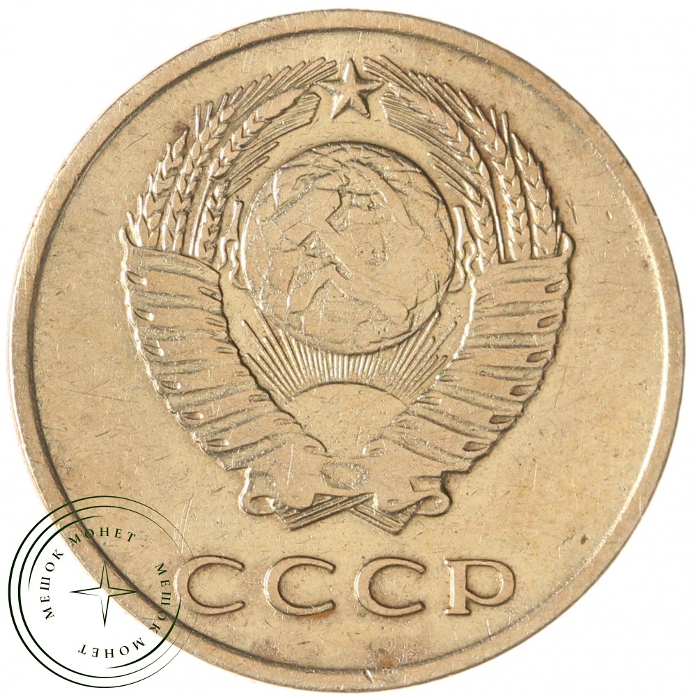 Аверс монеты состоит из изображения герба Союза Советских Социалистических Республик (СССР), с четырнадцатью витками лент, плюс одна общая, снизу по центру. Внизу надпись СССР.