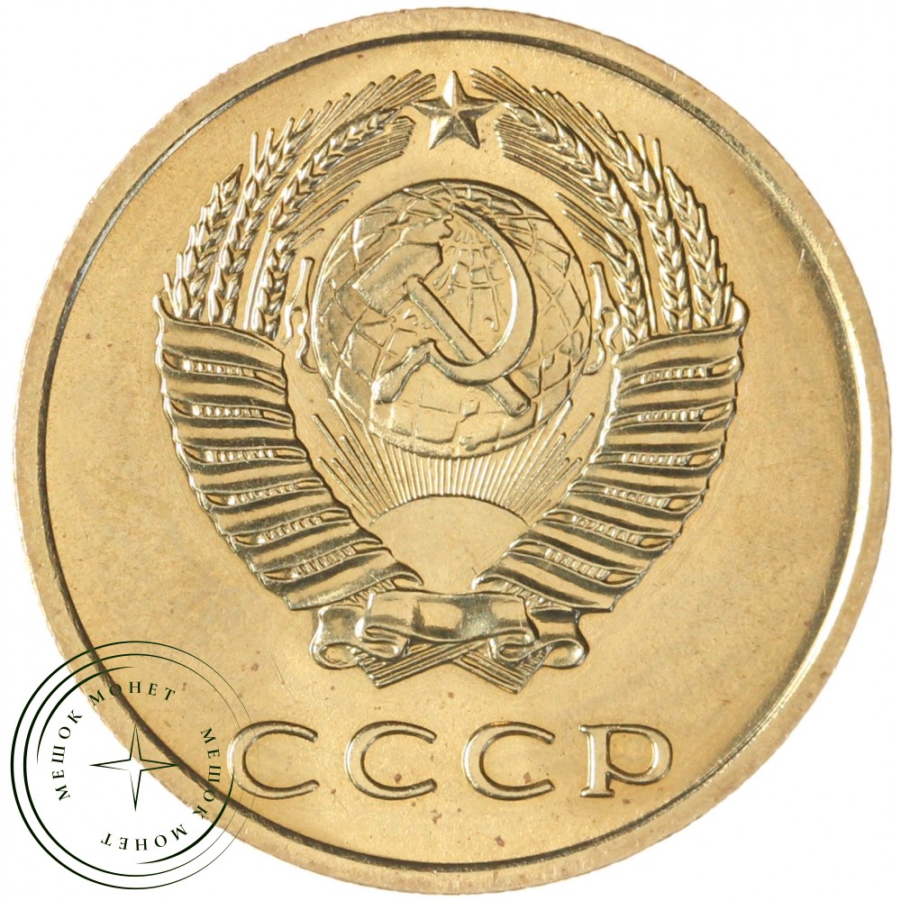 Аверс монеты состоит из изображения герба Союза Советских Социалистических Республик (СССР), с четырнадцатью витками лент, плюс одна общая, снизу по центру. Внизу надпись СССР.