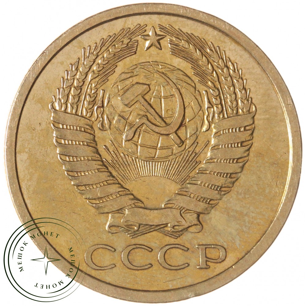 Аверс монеты состоит из изображения герба Союза Советских Социалистических Республик (СССР), с четырнадцатью витками лент, плюс одна общая, снизу по центру. Внизу надпись СССР.