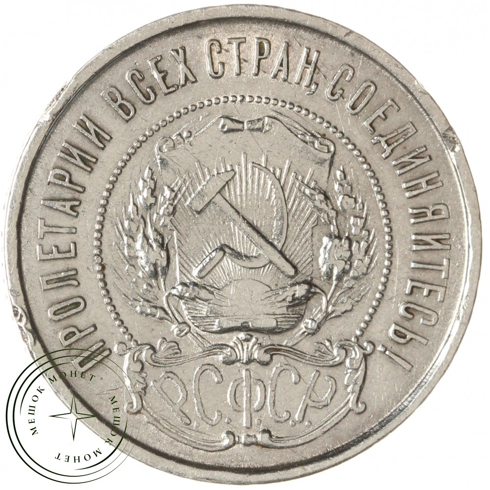 Аверс монеты состоит из изображения герба Российской Советской Федеративной Социалистической Республики (РСФСР), надписи "Пролетарии всех стран, соединяйтесь!". Внизу надпись РСФСР, с точками после каждой буквы.