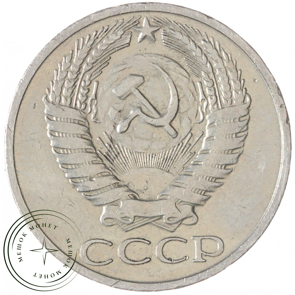 Аверс монеты состоит из изображения герба Союза Советских Социалистических Республик (СССР), с четырнадцатью витками лент, плюс одна общая, снизу по центру. Внизу надпись СССР.