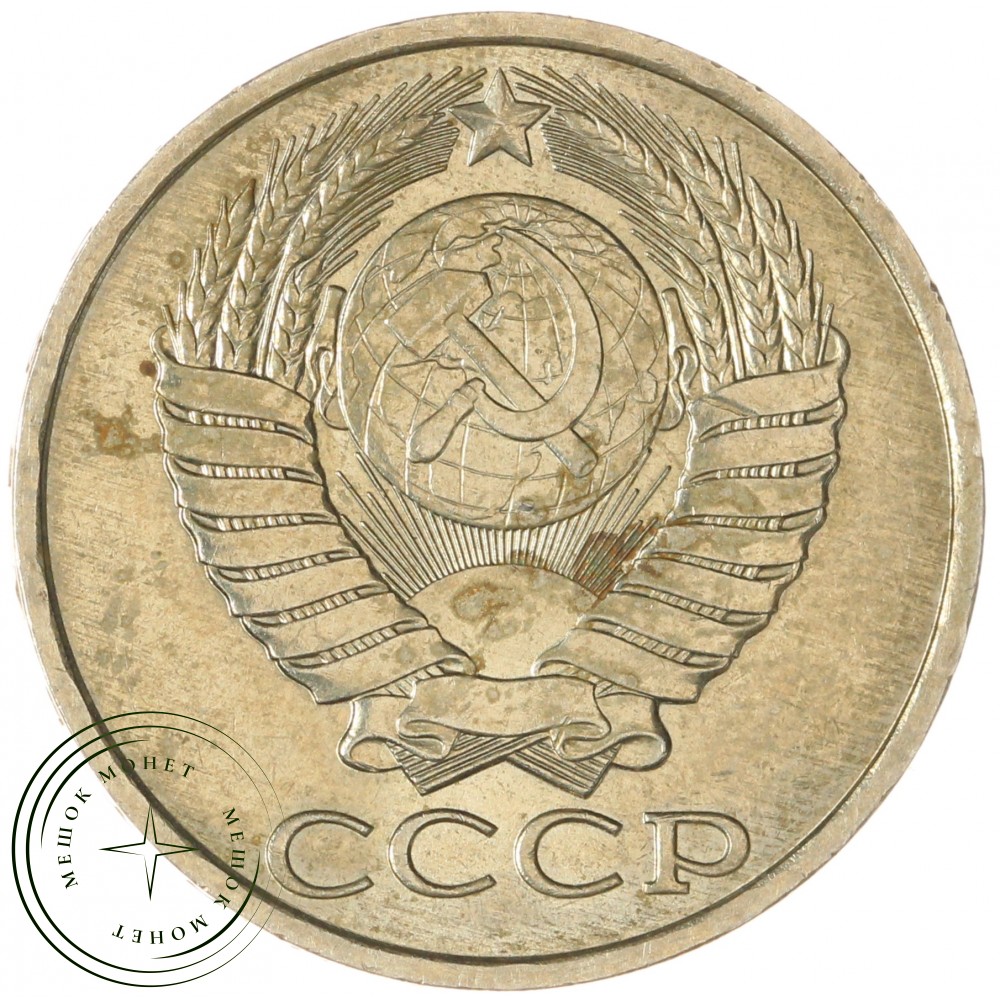 Аверс монеты состоит из изображения герба Союза Советских Социалистических Республик (СССР), с четырнадцатью витками лент, плюс одна общая, снизу по центру. Внизу надпись СССР.