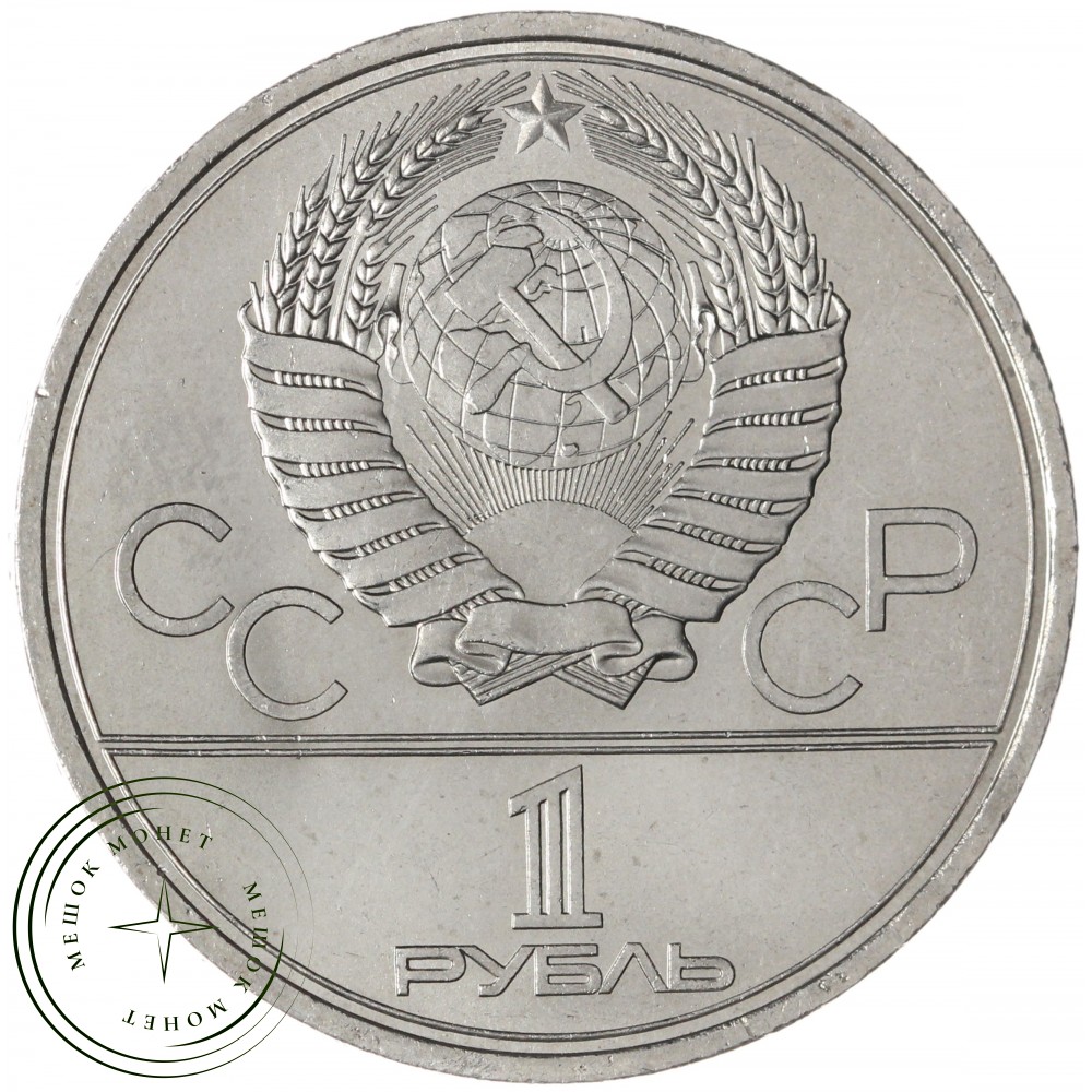 Аверс: сверху герб СССР с 15 витками ленты, слева от него буквы «СС», справа «СР», ниже двойная черта, под ней номинал монеты «1 РУБЛЬ».