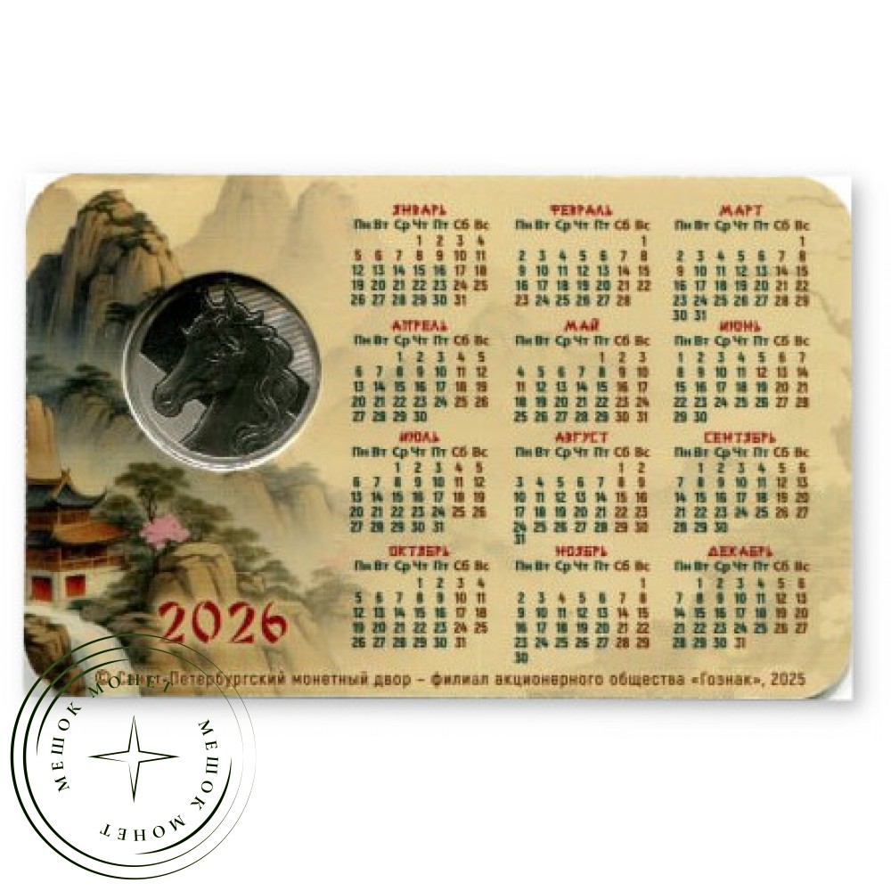 Карманный календарь-жетон на 2026 год, посвященный символу года по восточному календарю — Лошади.