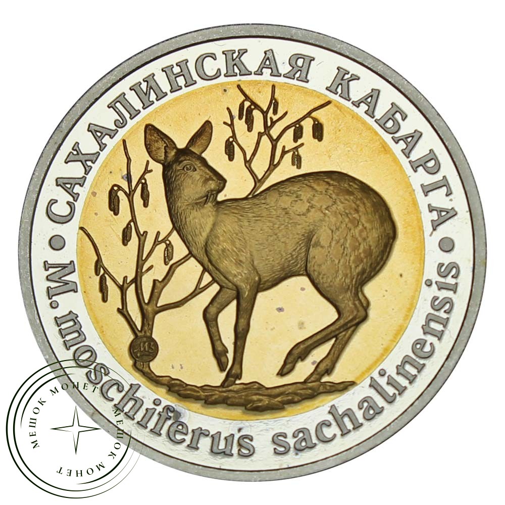 Монетовидный жетон 5 червонцев 2014 года, посвященный Сахалинской Кабарге. Серия: Красная Книга. Страна: России. Двор: ММД (Москва). Состояние: PROOF.
