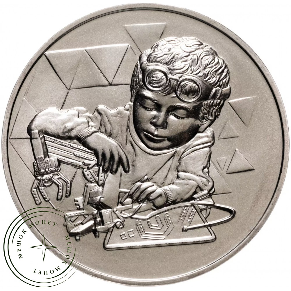 Аверс: Изображен ребенок, занимающийся конструированием, что символизирует развитие и творчество.