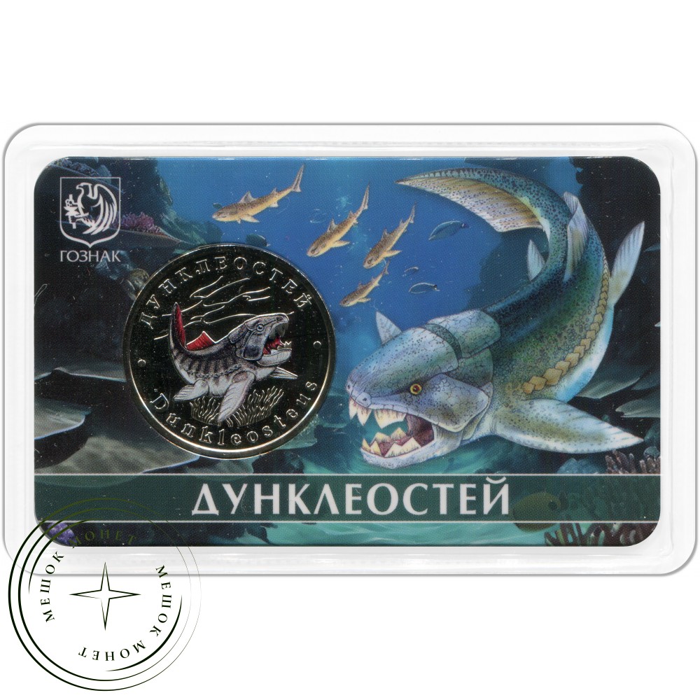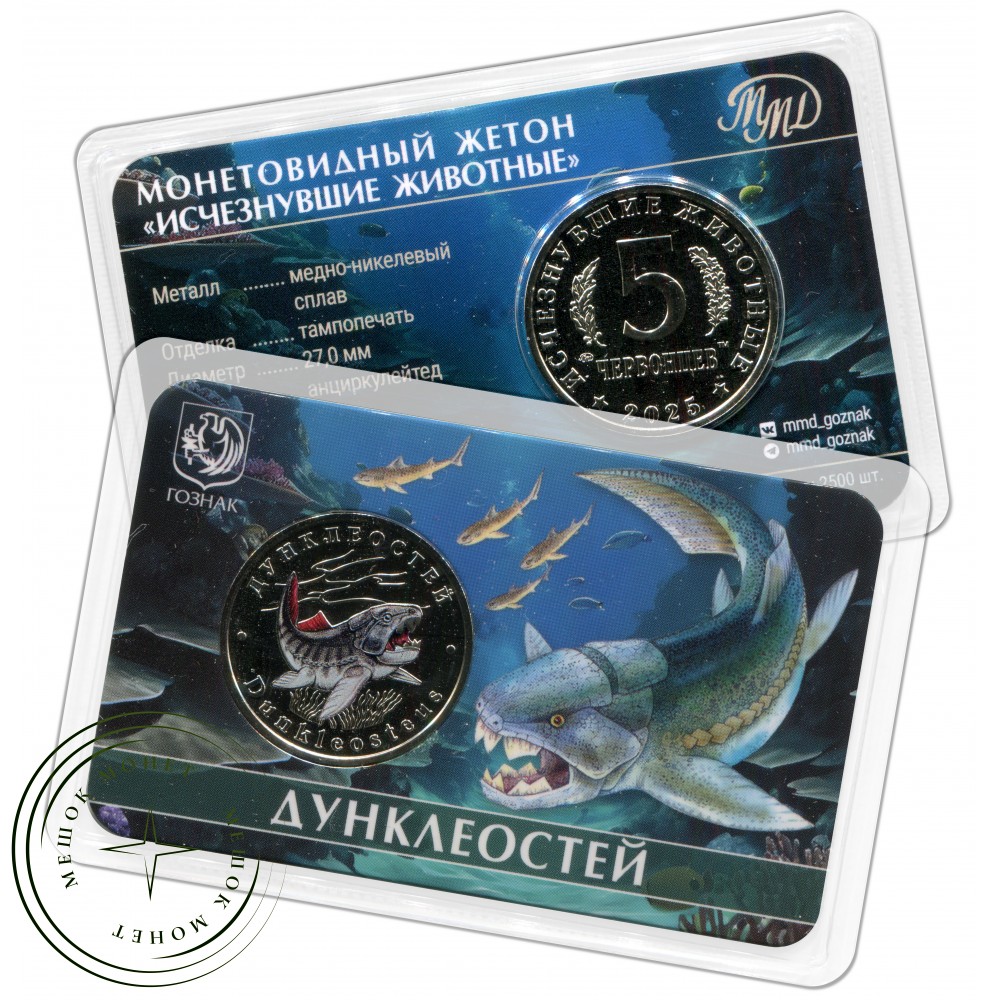 Монетовидный жетон «Дунклеостей» Московского монетного двора из серии «Исчезнувшие животные».