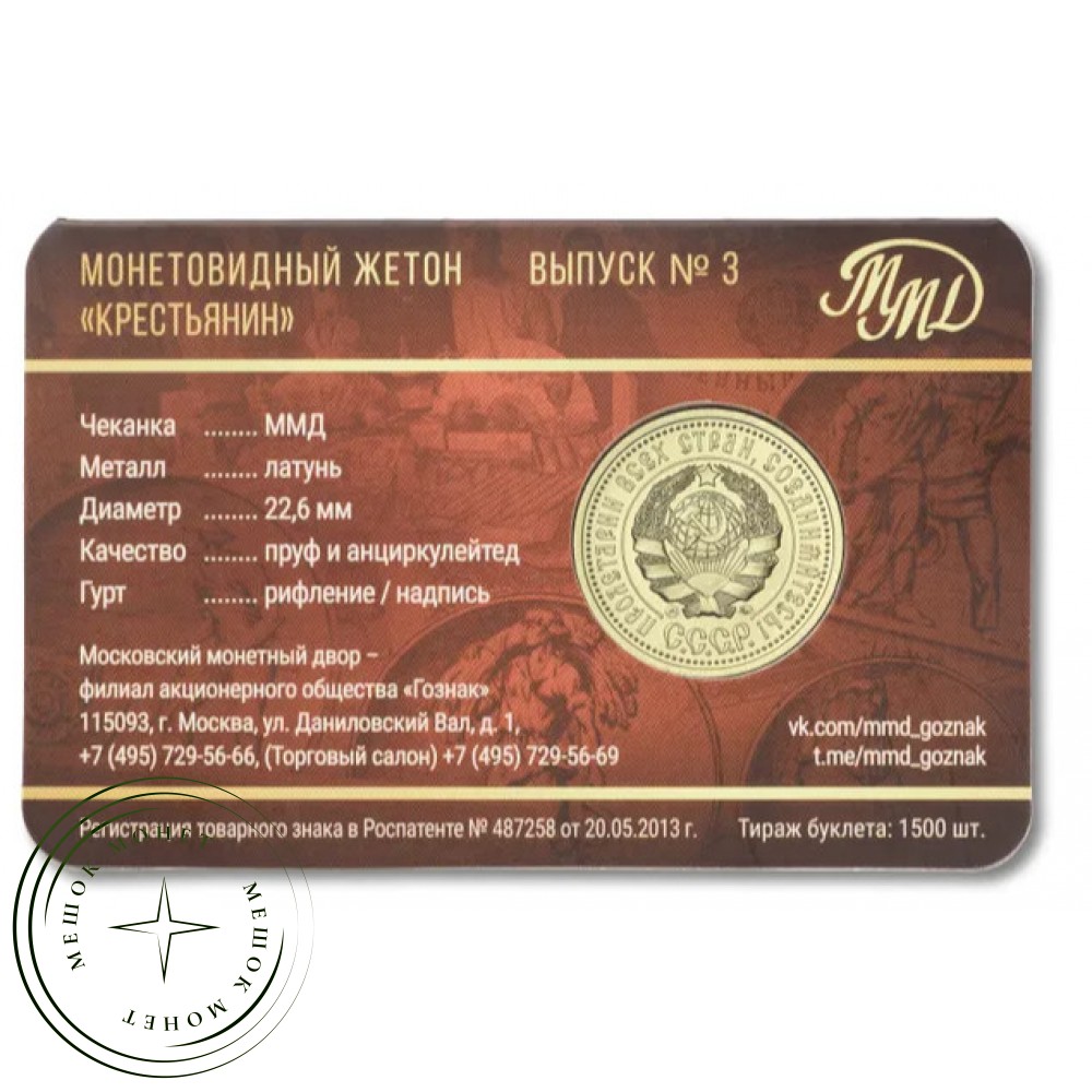 На жетоне, как и на оригинальной монете, изображён сеятель на фоне индустриального пейзажа.