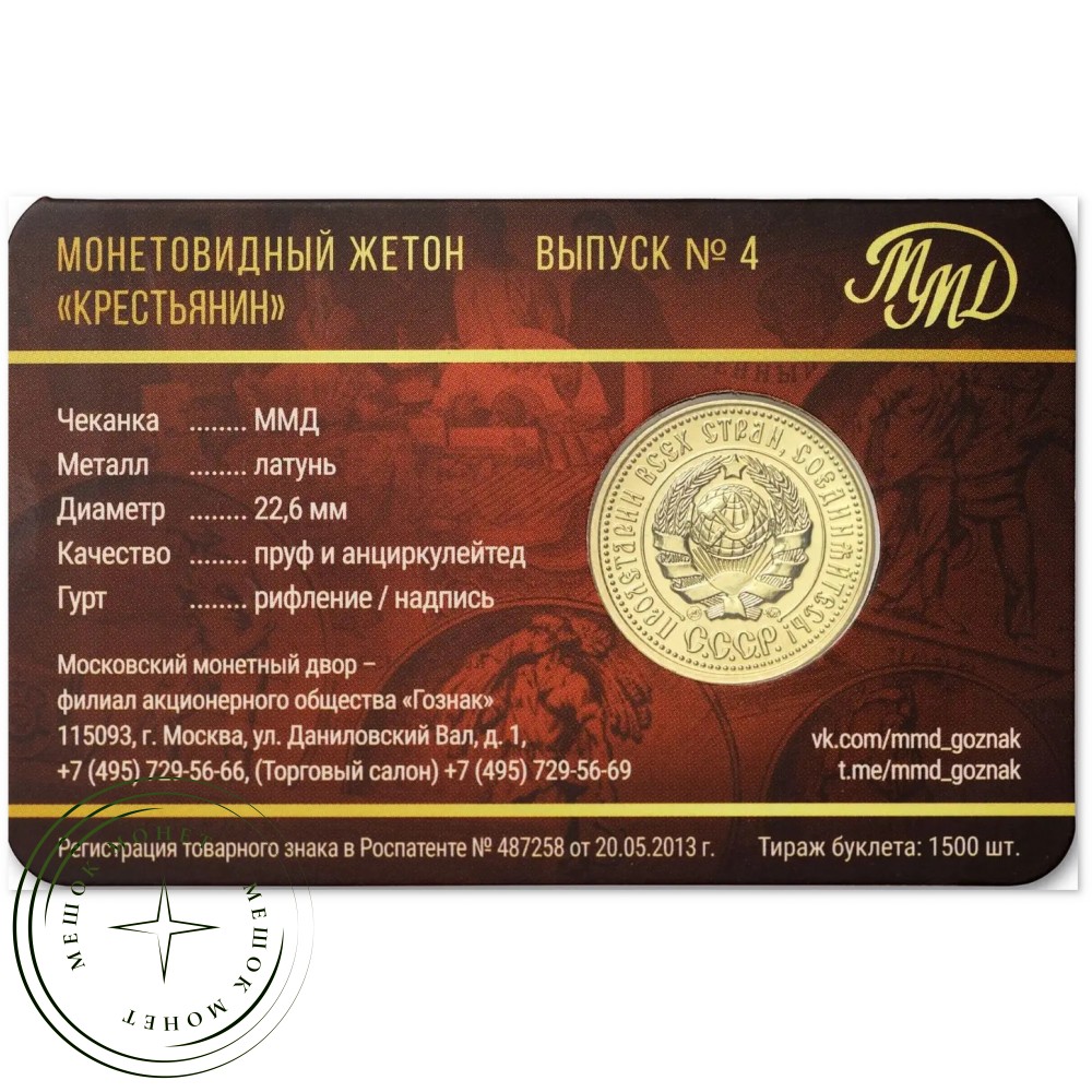 Этот жетон является 4-м выпуском в данной серии и воспроизводит дизайн знаменитой золотой монеты «Сеятель» образца 1923 года.