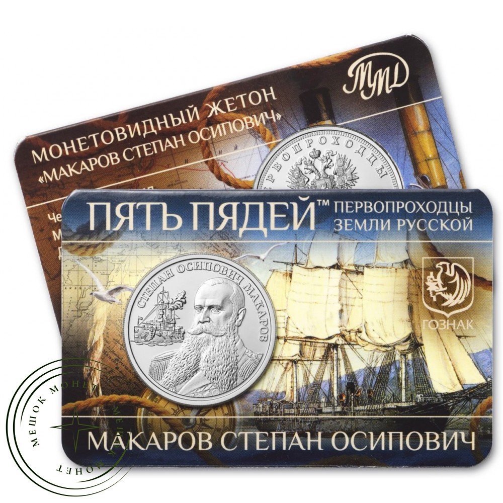 Монетовидный жетон «Макаров Степан Осипович» серии «Пять пядей» выпущен Московским монетным двором (ММД) Гознака. Этот жетон входит в серию «Первопроходцы земли русской» и посвящен русскому адмиралу и океанографу Степану Осиповичу Макарову.